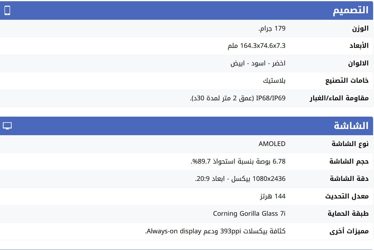 - الشاشة: AMOLED بحجم 6.78 بوصة بدقة FHD+