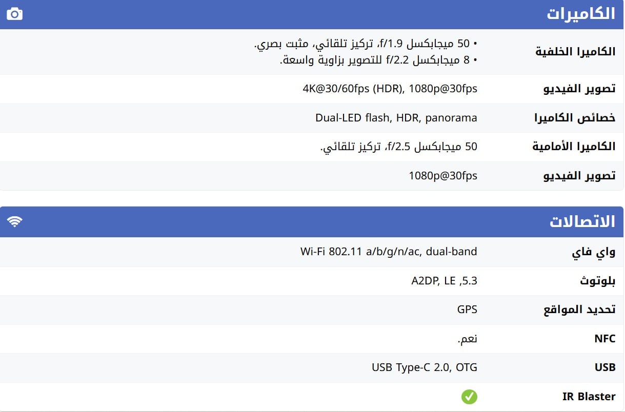 - كاميرا امامية وخلفية بدقة 50 ميجابكسل يعتمد عليهم.
