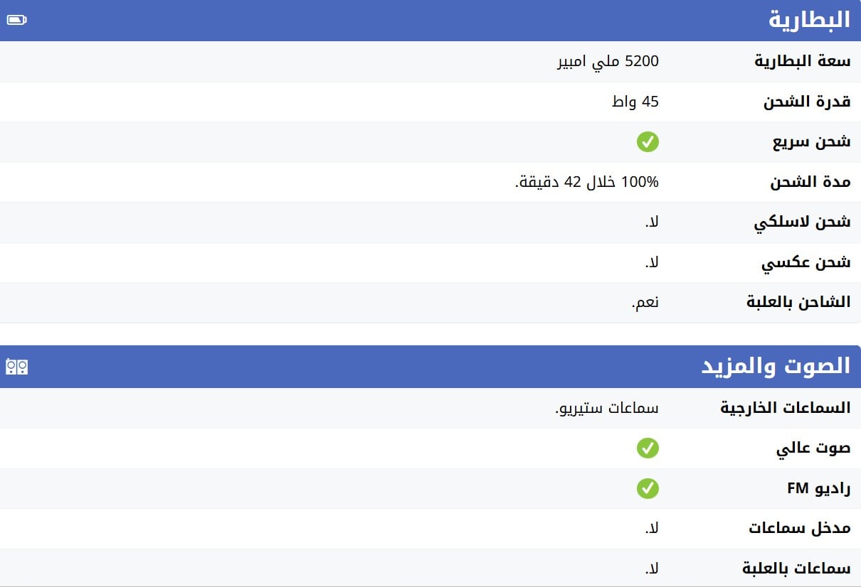 - البطارية بسعة 5200 ملي امبير لا يمكن إزالتها تدعم تقنية الشحن السريع بقدرة 45 واط.