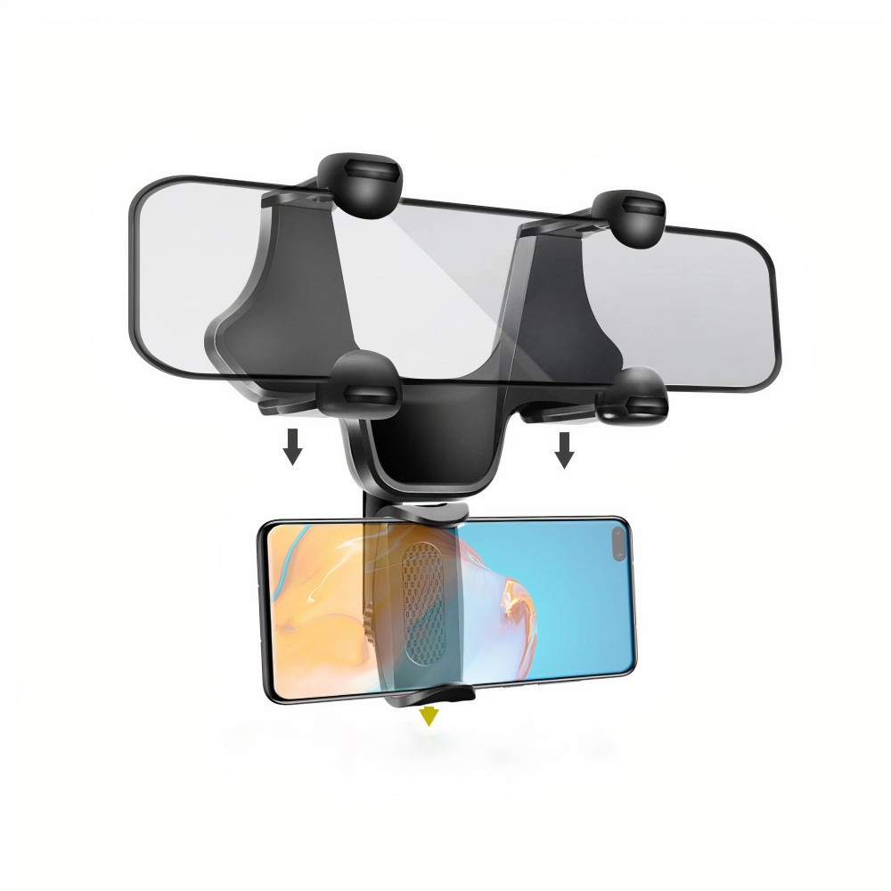 سهولة التركيب: يتميز الحامل بتصميم بسيط يسهل تركيبه على أي نوع من المرايا الأمامية دون الحاجة إلى أدوات.