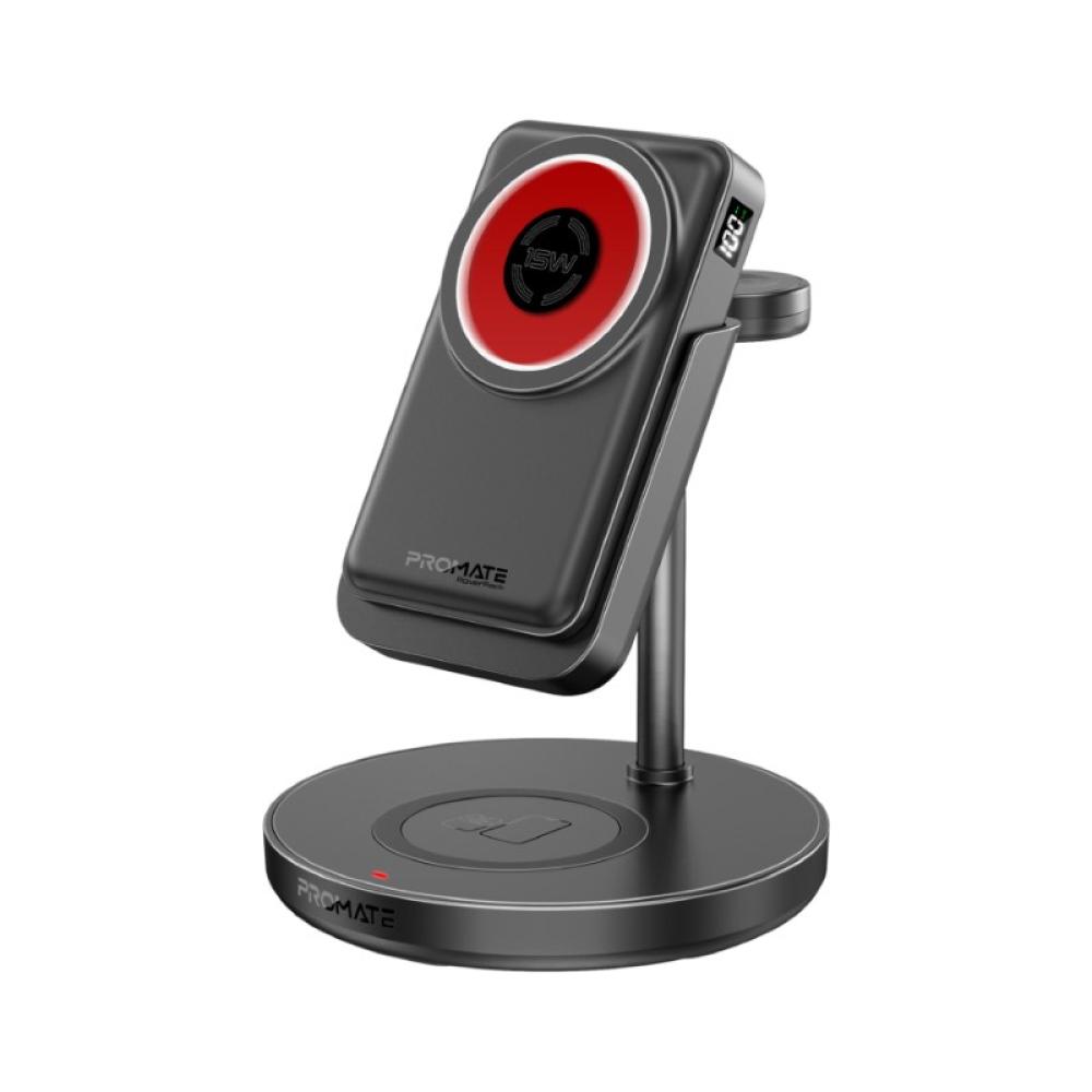 حامل فريد من نوعه مع وحدات شحن قابلة للفصل: استمتع بحامل شحن فريد من نوعه يتماشى بشكل مثالي مع أجهزتك ويضفي لمسة من الأناقة على مساحة مكتبك. يمكنك سهولة حمل وحدة شحن Apple Watch القابلة للفصل والبطارية الصغيرة، مما يضمن لك دائمًا وجود طاقة احتياطية لجميع أجهزتك دون الحاجة إلى القلق بشأن نفاد الطاقة.