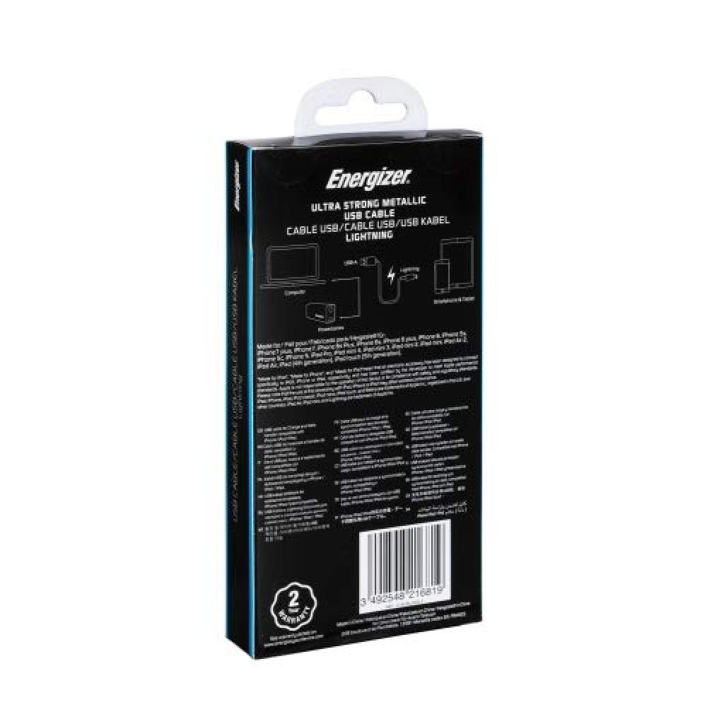 - كابل لايتينينج مصنوع من الفولاذ والزنك من انرجايزر لجهاز ايفون / اي باد / اي بود بلمسة نهائية معدنية فاخرة لمظهر عصري ومحمي بمادة فولاذية من الزنك، ومصمم ليدوم طويلاً. يقوم بشحن أجهزتك بشكل أنيق وبطول واحد مناسب لحمله معك في كل مكان.